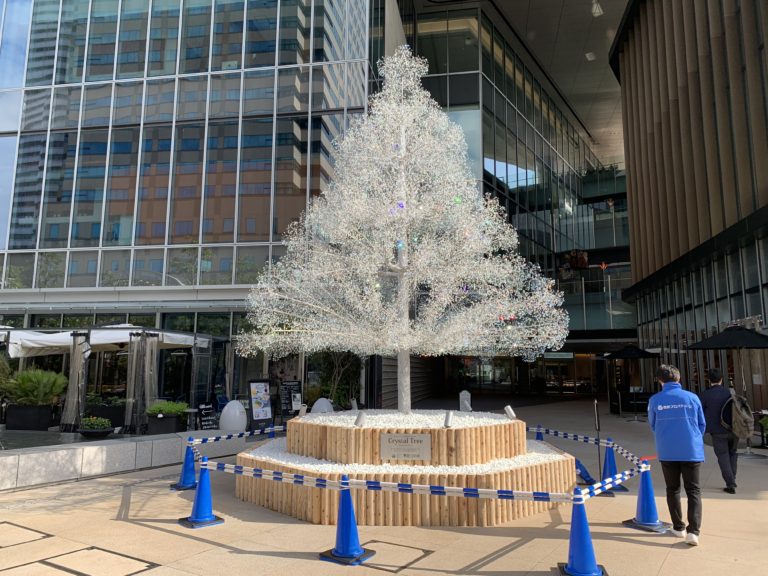 紀尾井町にある東京ガーデンテラス紀尾井町の目の前に建てられたこのクリスマスツリー。 箱根ガラスの森美術館とコラボレートしたクリスタルツリーとのこと。