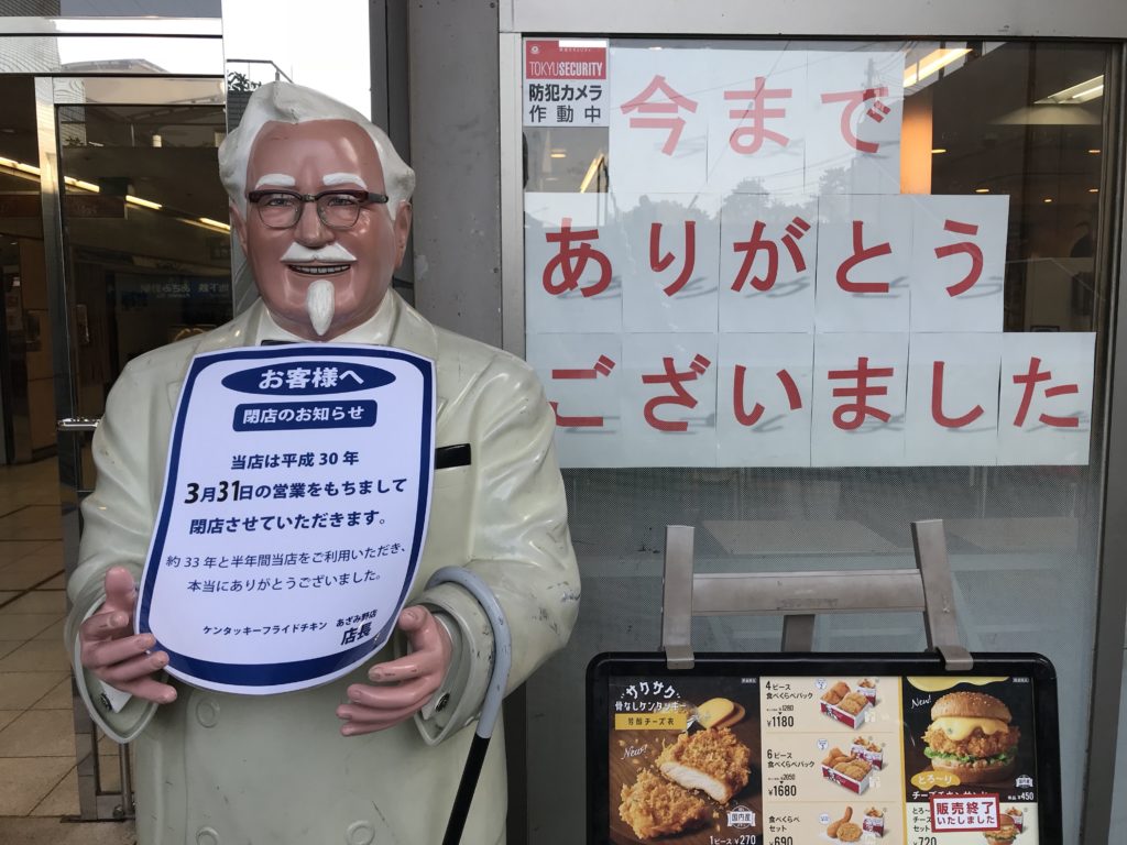 なんと、驚き。ケンタッキーあざみ野店が閉店というのだ。33年間の歴史に幕を下ろす。