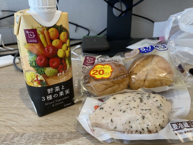 サラダチキン+ブランパン+野菜ジュース。今日はブランパンと野菜ジュースのみにした。 朝食と夕食はカロリーを取り過ぎないことを意識しながら普通に撮っている。ランチでタンパク質やカロリーを落とすことを意識している。これで、ま […]