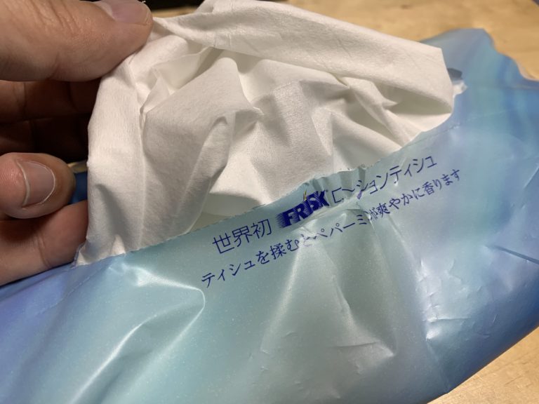 たまたまスーパーで買い物しているときに発見したのがこちら。 もう、フリスクと言えばあのミントタブレットでおなじみですよね。それがティッシュになっていて驚きました。