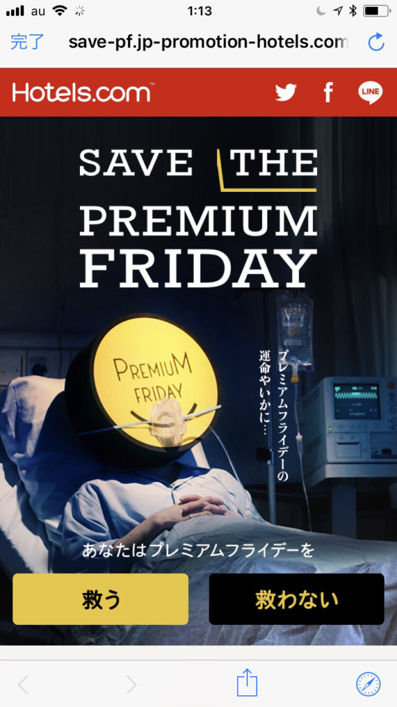 2017年10月30日 広告とマーケティング 瀕死のプレミアムフライデーという広告が面白そう Advertisement Space (Concept) 我が家ネット速度制限でまったく楽しめないのですが、見た目が面白かったのでメモまで。 http://save-pf.jp-promotion-hotels.com/index.php Advertisement Space (Concept)